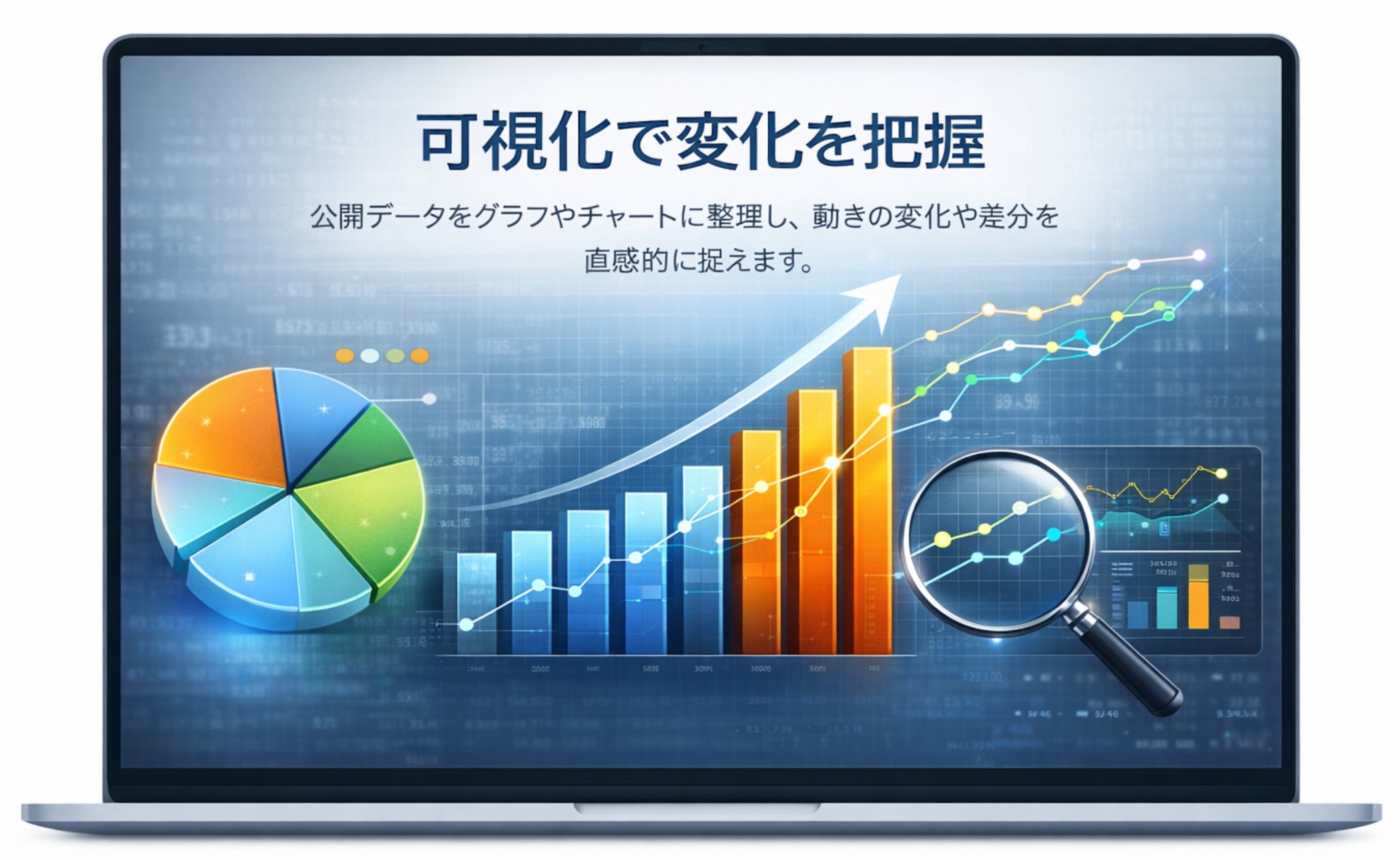 公開データをグラフやチャートに整理し、動きの変化や差分を直感的に捉えます。